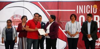 Karina Pérez Popoca da inicio a adoquinamiento en Acatepec y Tlaxcalancingo